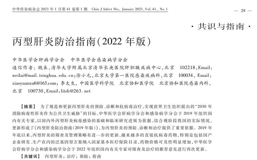[2] 中華醫(yī)學(xué)會肝病學(xué)分會, 中華醫(yī)學(xué)會感染病學(xué)分會. 丙型肝炎防治指南(2022年版)[J]. 中華傳染病雜志2023, 41(1): 29-46.